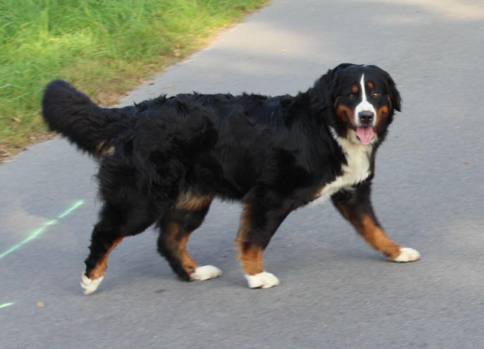 In der Hundeschule hat sie viel Spaß und tobt und spielt mit ihren Hundefreunden.