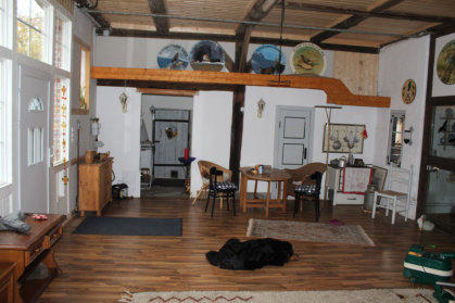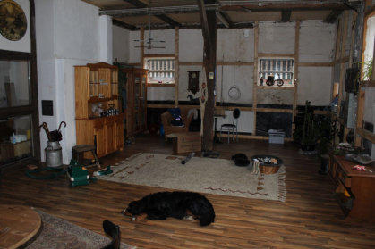 Sie werden in der Wurfbox in unserer Diele geboren. (die Diele von der Tenne gesehen)